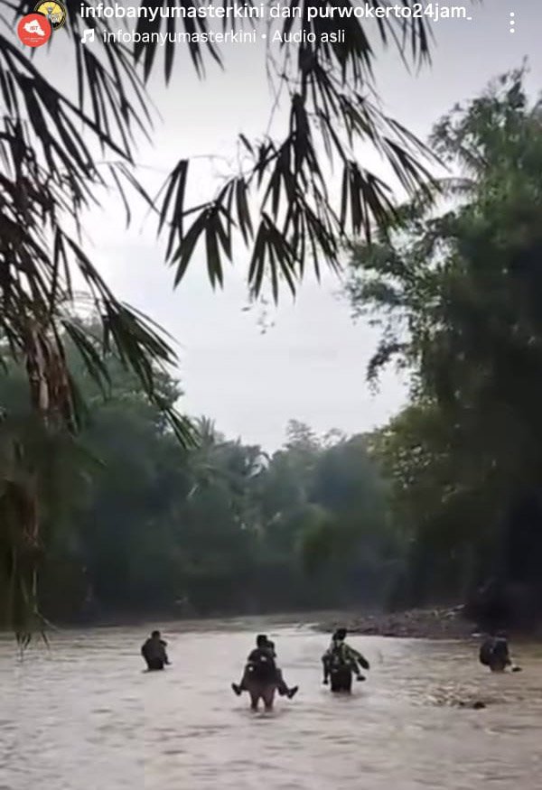 Video berdurasi 39 detik itu diunggah akun Instagram @infobanyumasterkini. Dalam tayangan tersebut, tampak beberapa warga berjalan perlahan melawan arus sungai, bahkan salah satu di antaranya terlihat nyaris terjatuh akibat derasnya aliran air.