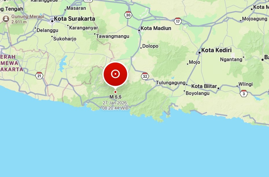 Berdasarkan informasi resmi BMKG, gempa Pacitan terjadi pada pukul 08.20 WIB dan saat ini masih dalam proses pemantauan lanjutan oleh sistem seismik nasional.