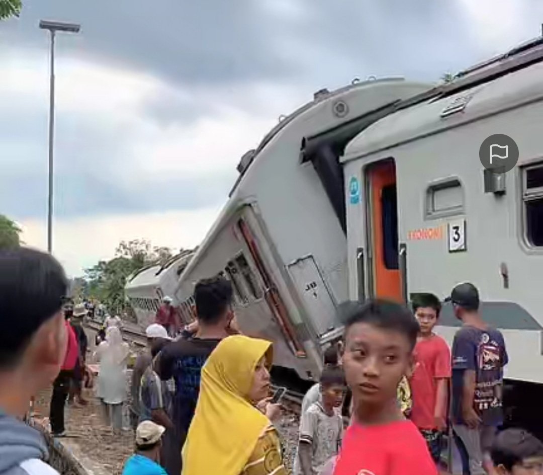 Peristiwa itu terjadi sekitar pukul 14.30 WIB di jalur antara Desa Talok dan Desa Ledug. Dugaan sementara, insiden dipicu oleh kondisi rel yang mengalami kerusakan.