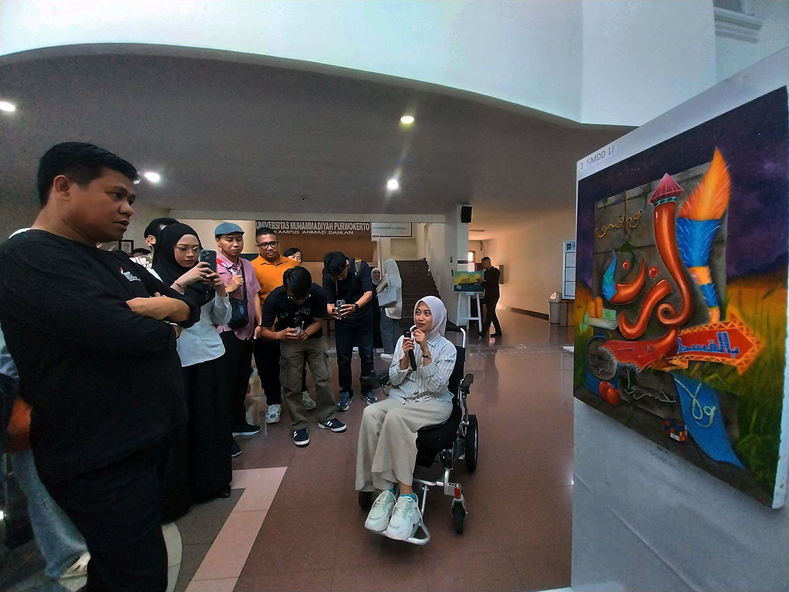 Di tengah suasana haru, semangat solidaritas juga datang dari karya seni. Eprisa Nova Rahmawati, pelukis difabel UMP, turut menyumbangkan karya lukisannya untuk dilelang. Seluruh hasil penjualan akan didonasikan kepada korban bencana di Aceh dan Sumatera.