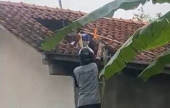 Serangan berlangsung cukup lama hingga membuat korban kesakitan di atas atap rumah.