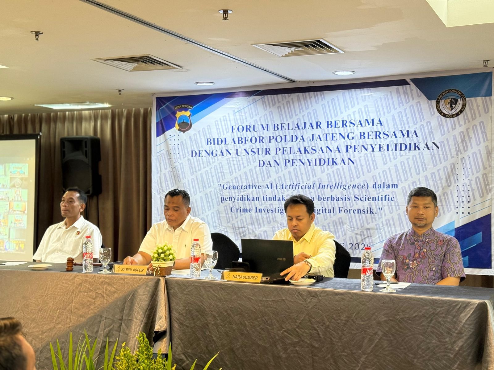 Kegiatan bertajuk “Generative AI dalam Penyidikan Tindak Pidana Berbasis Scientific Crime Investigation dan Digital Forensik” ini diikuti oleh sejumlah penyidik dari berbagai satuan kerja di lingkungan Polda Jateng. Tujuannya, membekali aparat penegak hukum dengan wawasan dan keterampilan terkini untuk menghadapi tantangan kejahatan digital yang semakin canggih.