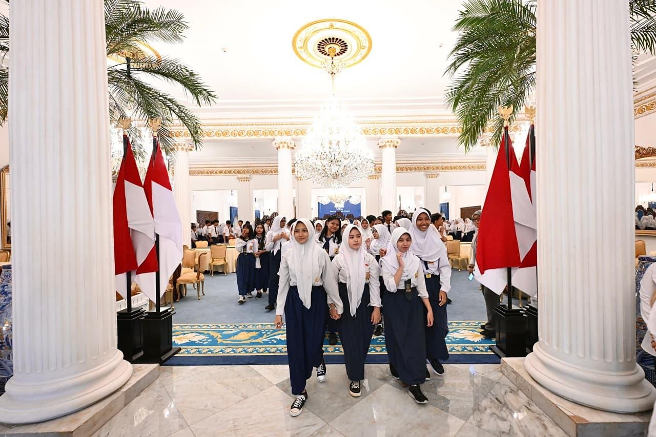 Salah satu siswa, Azhari, mengaku baru pertama kali bisa masuk ke dalam bangunan utama Istana, meski sebelumnya pernah datang ke area luar saat penyambutan tamu negara.