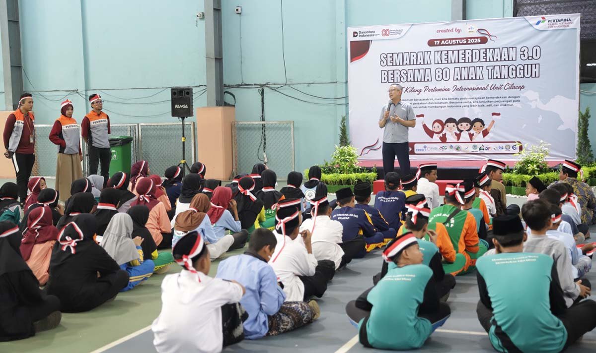 CILACAP, MyInfo.ID – Semangat kemerdekaan Republik Indonesia ke-80 turut dirasakan oleh 80 anak yatim piatu di sekitar operasional Kilang Pertamina Internasional (KPI) RU IV Cilacap.