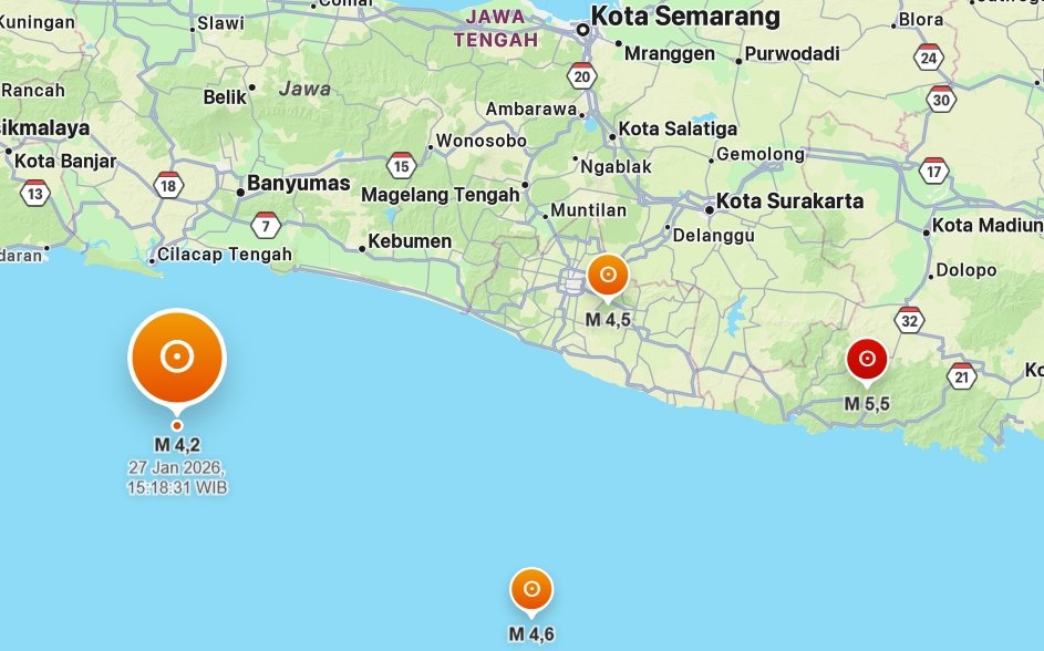PURWOKERTO, MyInfo.ID – Gempa Selatan Jawa terjadi secara beruntun. Sepanjang gempa hari ini, Selasa 27 Januari 2026, BMKG mencatat tiga gempa mengguncang wilayah selatan Pulau Jawa dalam rentang waktu sekitar enam jam. Dua di antaranya merupakan gempa darat, sementara satu lainnya terjadi di laut.